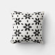 A chic black and white abstract floral print features elegant black flower petal shapes on a crisp white background.