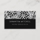 Modern black and white business card with geometric floral pattern (abstract dahlias). Remarkable, bold, and modern.