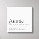 Modern Black and White Aunt Auntie Definition Canvas Print