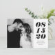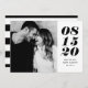 Modern Black and White Bold Date Typography Photo Save the Date | A customisable save the date flat card featuring bold typography and stripes pattern. This stylish photo save the date card is perfect for any wedding theme and any season. You can further customise the card by changing the pattern to another photo or another image.