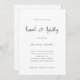 These modern, simple and elegant brunch and bubbly invitations feature a minimalist black and white text design with stylish handwritten script.