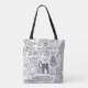 Modern cute black and white whimsical patterned cats and kittens tote bag. A purrfect gift for the cat lover in your life. Created by Julie Nicholls©.