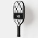 Modern Black and White Chequered Initials Monogram Pickleball Paddle