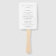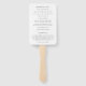 Modern wedding program hand fan featuring a simple design with a combination of an elegant script and classic serif fonts.