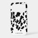 This Modern Black and White Cowhide Pattern Western iPhone 17 Pro Case features a bold black-and-white cowhide pattern with an all-over spotted design that feels playful, modern, and eye-catching. The clean white background keeps the look fresh and stylish, while the personalized name at the bottom adds a simple, thoughtful touch. Perfect for everyday use, this case is a fun way to protect your phone while showing off your love for trendy animal prints and personalized details.