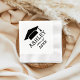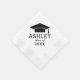Custom graduation party napkin design features a black grad cap with the graduate's name and class year. Customise the black font colour via Customise It.