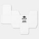 Modern graduation party favour boxes feature a grad cap with simple and black typography design that can be personalised with the graduate's name and school. White background and black text can be customised to match school or party theme colours.