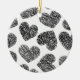 Modern Black and White Doodle Hearts Pattern Ceramic Tree Decoration