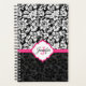Modern black and white floral damask seamless pattern and hot pink stripe