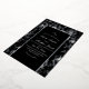 Modern stylish wedding invitation black with silver dust on with a gold ink pour effect and modern calligraphy. Classy and elegant, simple and modern invitation.