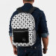 This modern backpack features a black and wite geometric pattern with a custom monogram in a round frame. All colours are customisable!