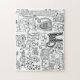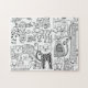 Modern Black and White Hand Drawn Cats Pattern  Jigsaw Puzzle