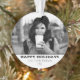 Modern Black and White Happy Holiday Photo Ornament