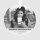 Modern Black and White Happy Holiday Photo Ornament. The ornament is in black and white colour scheme - with photo, Happy holidays wish, your personal note and a year number. Insert your favourite photo into the template - black and white photo matches very well with the design. Personalise this ornament with your name and year number or erase it. It`s a great design for single people, family, couples,... A wonderful gift idea or holiday keepsake for your family, friends or yourself.