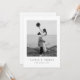 Celebrate your love with this modern minimalist wedding invitation featuring a full black and white photo on the front paired with elegant serif typography. The clean design highlights your special details in timeless style, creating a sophisticated and romantic way to invite guests to your big day. Perfect for couples who love a classic yet contemporary look.