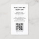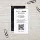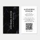Modern, sleek, and minimal black and white business card design for a hair stylist or other professional includes a QR code that customers can scan for menu services or payment. Customise the company information and employee contact information. Space to include an Instagram social tag and Venmo username for payment and tips. Card features a stylish faux black marble texture on the back.