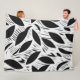 Modern Black and White Minimalist Leaf Pattern Fleece Blanket