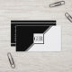 Modern black and white monogram and triangles modern geometric architect business card. The front includes two diagonal stripes one black and one white that separate the card in two triangles. A white square is on the center with your monogram. The back is of black color with two white lines and a QR code for more info.