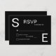 This simple minimalist wedding RSVP card features black background with modern white calligraphy and initials/monogram.