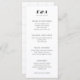 A simple and modern customisable skinny dinner menu in classic black and white. Featuring a bold serif two letter monogram and sleek date text plus the soft grey gridlines on the backer give any table or place setting a hint of modern flair.