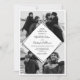 Invite your guests to celebrate your wedding day, with these modern black and white photo collage wedding invitations. Featuring 4 photographs with a modern diamond shaped label under a modern wedding invitation template that can be customised easily. All font styles, sizes and colours can be changed easily by clicking on the customise further link after personalising.