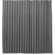 This shower curtain features a minimalist design of black and white pin stripes for a modern look.