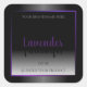 Make a lasting impression with this elegant and modern product label design featuring a black and white colour gradient with a shimmery purple decor frame. Matching an outstanding font with shadow effect.
