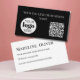Stand out with this modern black and white business card design featuring your custom logo, a scannable QR code, and personalised contact details. Perfect for entrepreneurs, small businesses, professionals, and creatives who want a sleek and professional networking card. The double-sided design highlights your logo and tagline on the bold black front, while the back provides your name, business details, phone number, and email in a clean minimalist style. An ideal choice for real estate agents, consultants, freelancers, or anyone looking to make a lasting impression at meetings, events, or trade shows.