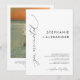 This modern minimalist wedding invitation features elegant script accents and a clean black and white design. Your wedding details are beautifully displayed on the front, while the back includes space for a favourite photo and a custom QR code. Guests can scan the code to RSVP and access your wedding website for directions, accommodation info, and gift registry etc.
