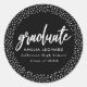 Seal your graduation envelopes with stylish personalized graduation stickers! The graduation stickers feature "graduate" in a trendy white script with a background of black and white sprinkles. Personalize the black graduation envelope seals by adding the graduate's name, school name, and graduation year. The stickers are also great for sealing graduation party favor bags!
