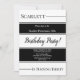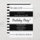 This elegant black and white Birthday invitation is perfect for a modern Birthday. The simple design features sleek black and white calligraphy on a black and white striped background.