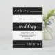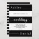 This elegant black and white wedding invitation is perfect for a modern wedding. the simple design features elegant black and white calligraphy on a black and white stripes background.