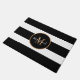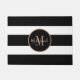 Set off your front porch or patio with this Modern Black And White Stripes Gold Monogram Door Mat. This minimal design has wide black horizontal stripes on white background and circle border on the centre. Your monogram initial is in faux gold simple lettering and personalised with name in white trendy hand lettered script. Click personalise template option and follow the prompts.