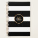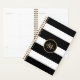 Keep your hectic schedule organised with this Modern Black And White Stripes Gold Monogram Planner. This minimal design has wide black horizontal stripes on white background and circle border on the centre. Your monogram initial is in faux gold simple lettering and personalised with name in white trendy hand lettered script.
