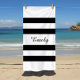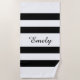 Personalised Modern Black And White Stripes Pattern Name Beach Towel.