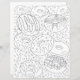 Modern black and white sweets doughnuts food illustration, perfect stationery that you can use as colouring page on one side.