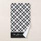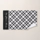 Modern Black and White Tartan Plaid Bath Towel Set features a tartan plaid with multiple intersection of black and white colours.It has tweed to give it a fabric texture.They can also be referred as diagonal buffalo plaid since the two colours are of same size.Please click on personalise button to customise it with your own family name or any text.