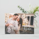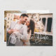 These modern, simple and elegant wedding save the date cards feature stylish handwritten script on the front as an overlay on your photo. The back has a simple white background with classic black text and another photo, along with a scannable QR code to add your wedding website.