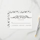 Modern black and white typography and flowers floral wedding RSVP reply card. It showcases your text in a cursive script style typography and two small black flowers with leaves. The backside includes a floral black and white pattern.