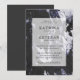 Modern and stylish wedding invitation with a black acrylic paint texture background. The texts have simple and minimalist look. Stylish design for wedding.