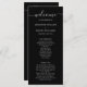 Personalised modern black and white wedding program with an elegant script font. Matching items available.