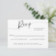 Keep your wedding response cards simple and stylish with this black and white modern RSVP design. Featuring elegant script paired with a clean layout, this card is ideal for contemporary weddings, minimalist themes, and black-tie affairs. Customise with your reply deadline and guest details to make gathering responses seamless and stress-free.