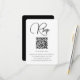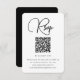 This modern wedding response card features a place for your QR code so that guests can easily rsvp on your wedding website. The front features a simple and clean black and white design with trendy lettering script typography. The minimal back is solid black.