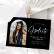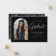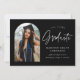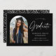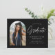 Trendy graduation announcement featuring the graduate's photo framed by a black arch with "Graduate" in a white handwritten script. Personalise the front of the arch graduation announcement card by adding the graduate's name, graduation year, school name, and future plans. The photo graduation announcement reverses to display a black and white dotted pattern. The announcement is suitable for both high school and college graduates.