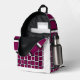 Add a modern edge to your look with this Print Cut & Sew Backpack, featuring a striking geometric square pattern in dark teal and white on a bold black background. Carefully cut and sewn for quality and durability, this backpack blends style, practicality, and creativity in one sleek design.