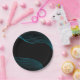 A sleek and elegant paper plate featuring a modern abstract design of flowing blue lines on a deep black background. This stylish design is perfect for adding a touch of sophistication to any celebration. It's an ideal choice for adult birthdays, cocktail parties, or any event with a contemporary theme.