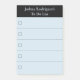 Plan your most important tasks with a modern to do list with your name at the top in a stylish light blue font on a bold black band. Below it are five light blue rows divided by thin black lines. Each row has a black checkbox you can tick as you complete items. Customise the checklist with your name or text in the sidebar.