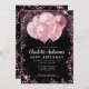 Modern Glam Blush Pink Black Glitter Sparkle Balloon Elegant Stylish Birthday Invitation