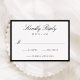 This wedding RSVP card features elegant black calligraphy script at the top, paired with classic serif lettering and space for your desired wedding response date. A bold black border frames the design, creating a polished and structured look that feels timeless and refined. The clean layout offers a sophisticated way for guests to reply, making this RSVP card well-suited for modern, formal, and classic wedding celebrations. Personalize the wording to create a response card that feels intentional and beautifully designed.