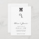 Modern Black Bow Monogram Wedding Invitation.A modern wedding invitation featuring a refined black bow accent and a personalized monogram set against a clean black and white layout. Designed with minimalist elegance, this sophisticated invitation blends contemporary style with timeless charm, making it perfect for couples seeking a polished and luxurious wedding announcement.